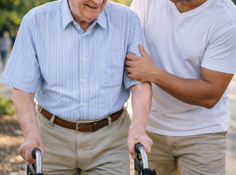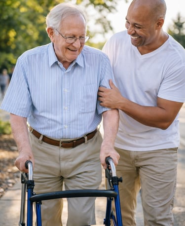 Gentle assistance with walking, transfers, and movement to help prevent falls and promote independence.